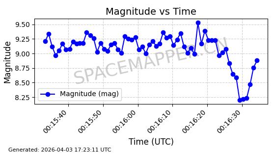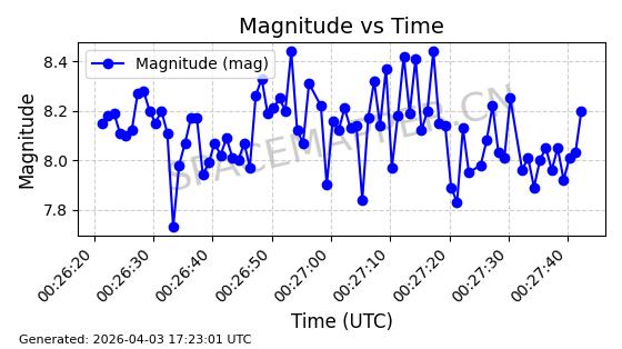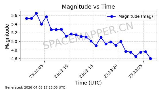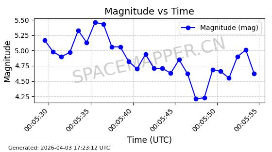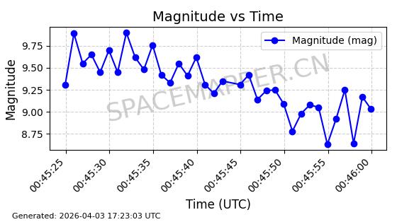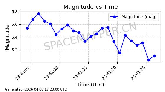 | STARLINK-1888 | 47171 | 47171 | 2020-11-25 同日期轨道 2020-088BB 同批次轨道 | 在轨 | 93分钟 | 53.0501 | 405.578 | 410.194 | 0.0003400 | 2026-04-03 00:00:03 | ||
