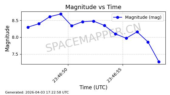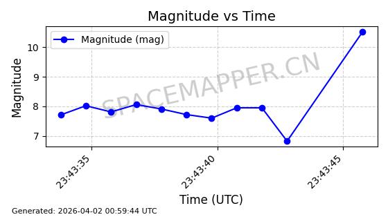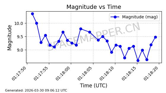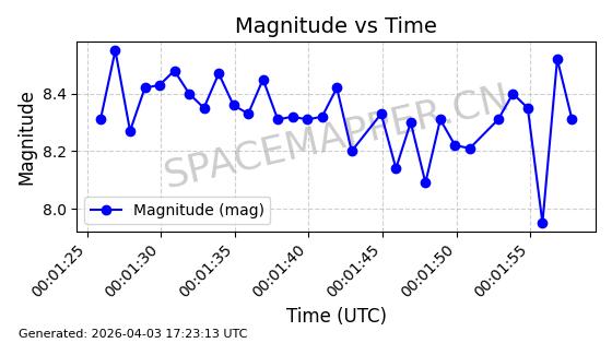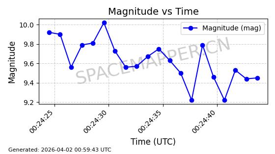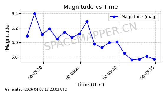 | 卫星名称 | AOE ID | NORAD ID | 发射日期 国际编号 | 在轨状态 | 轨道周期 | 轨道倾角 (度) | 近地点 (Km) | 远地点 (Km) | 偏心率 | 更新时间 (UTC) | 近期光变曲线 | 服务 |