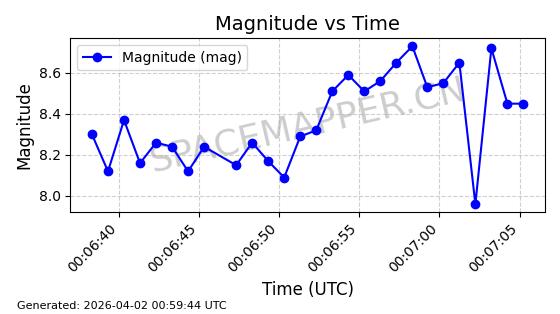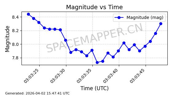 | STARLINK-1971 | 47572 | 47572 | 2021-02-04 同日期轨道 2021-009AA 同批次轨道 | 已陨落 | 88分钟 | 53.0232 | 154.131 | 163.181 | 0.0006922 | 2026-04-02 03:48:49 | ||