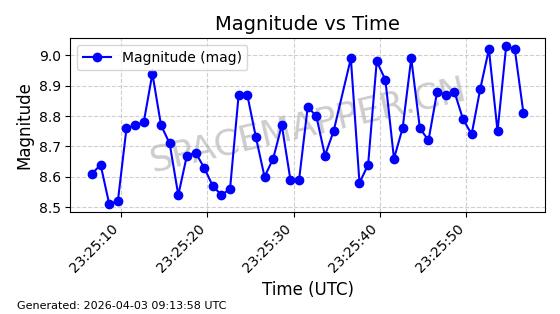 | STARLINK-1928 | 46758 | 46758 | 2020-10-24 同日期轨道 2020-074V 同批次轨道 | 在轨 | 92分钟 | 53.0412 | 349.194 | 356.638 | 0.0005529 | 2026-04-03 00:00:03 | ||