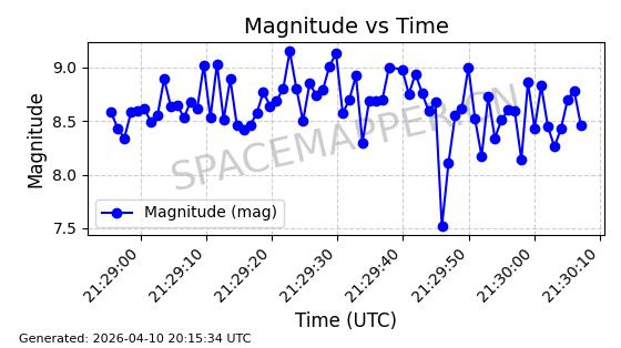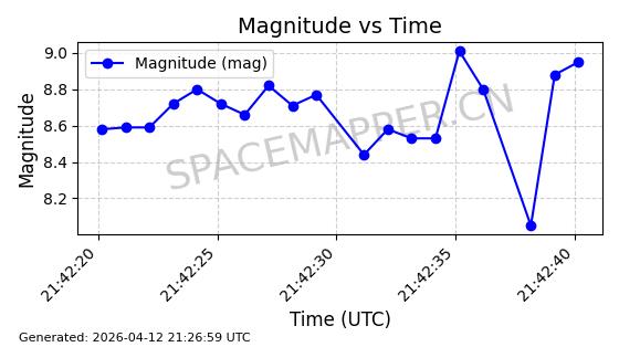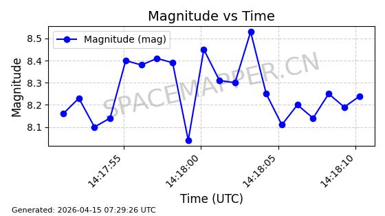| 卫星名称 | AOE ID | NORAD ID | 发射日期 国际编号 | 在轨状态 | 轨道周期 | 轨道倾角 (度) | 近地点 (Km) | 远地点 (Km) | 偏心率 | 更新时间 (UTC) | 近期光变曲线 | 服务 |