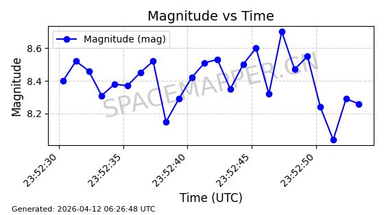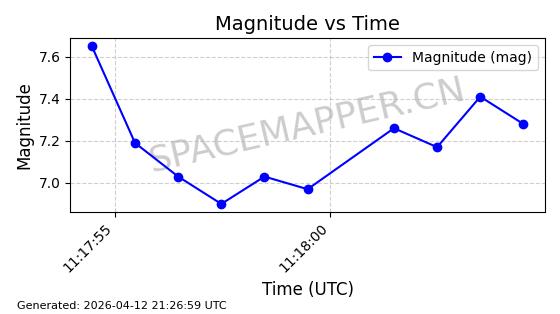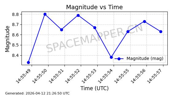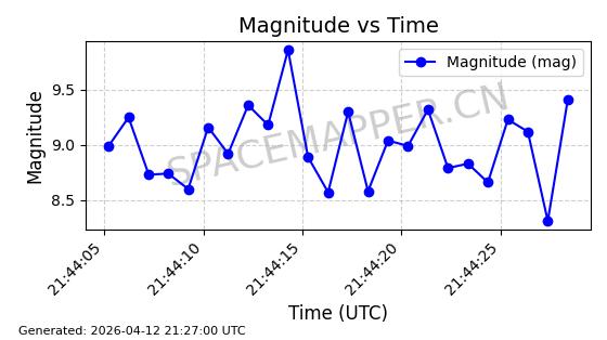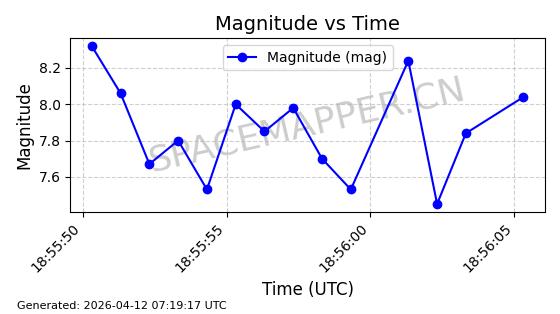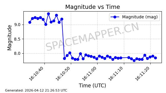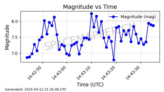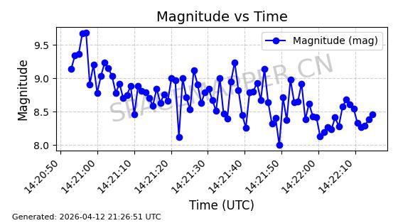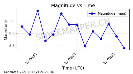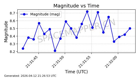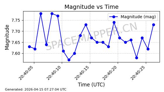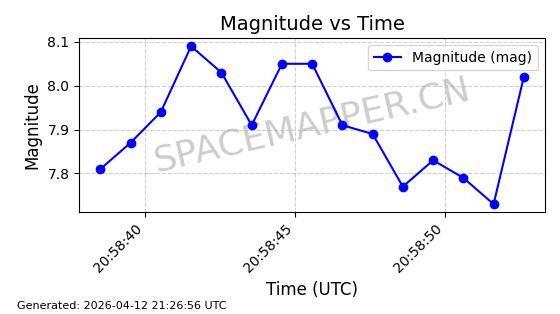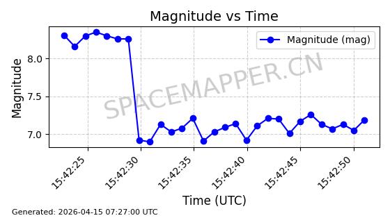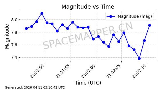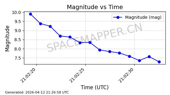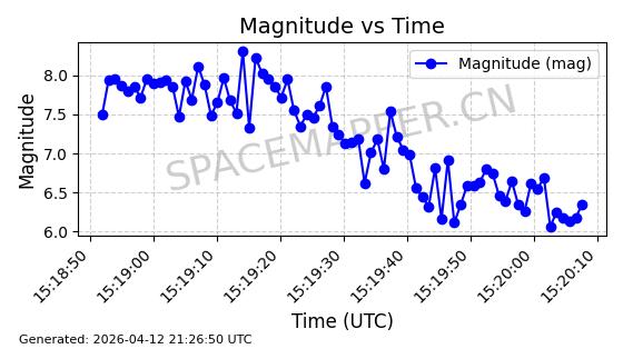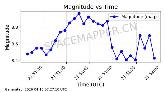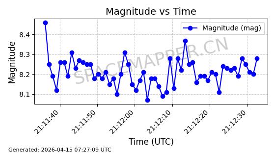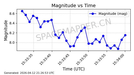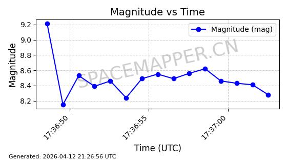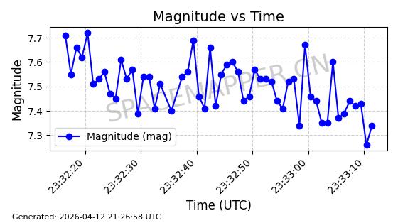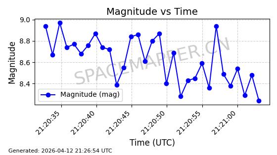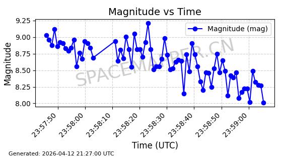 | STARLINK-2270 | 48000 | 48000 | 2021-03-24 同日期轨道 2021-024Z 同批次轨道 | 在轨 | 94分钟 | 53.1300 | 456.725 | 459.487 | 0.0002019 | 2026-04-14 04:36:11 | ||