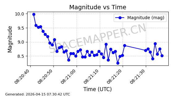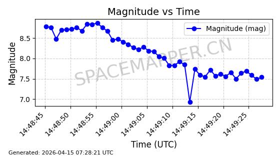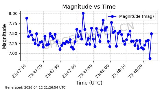 | STARLINK-2364 | 47904 | 47904 | 2021-03-14 同日期轨道 2021-021AW 同批次轨道 | 在轨 | 94分钟 | 53.1575 | 470.12 | 471.368 | 0.0000911 | 2026-04-14 05:43:42 | ||