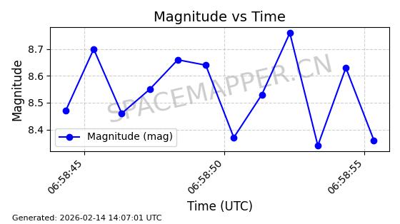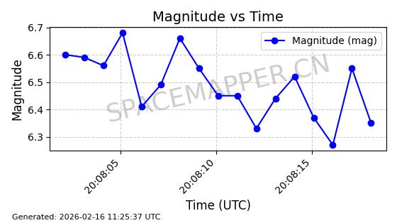 | STARLINK-2374 | 47913 | 47913 | 2021-03-14 同日期轨道 2021-021BF 同批次轨道 | 已陨落 | 87分钟 | 53.0334 | 142.212 | 158.564 | 0.0012523 | 2025-01-26 23:34:30 | ![]() | |