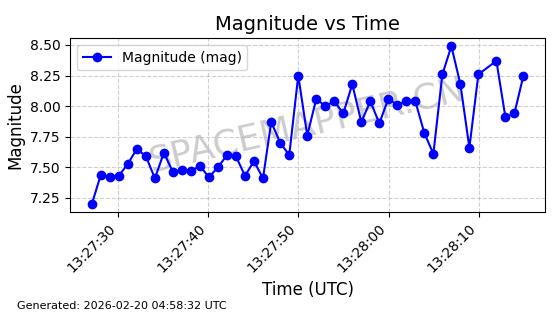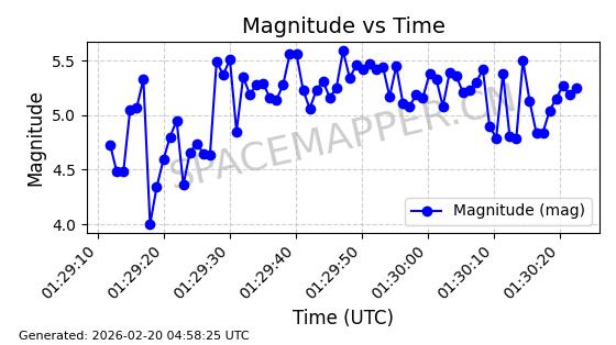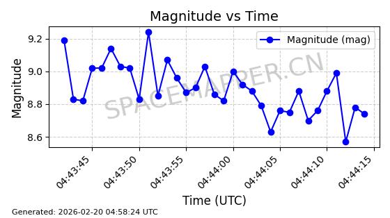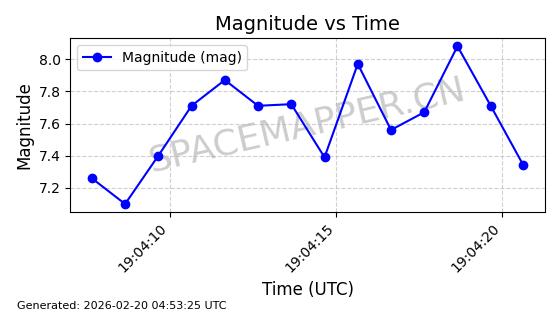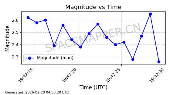 | STARLINK-2270 | 48000 | 48000 | 2021-03-24 同日期轨道 2021-024Z 同批次轨道 | 在轨 | 96分钟 | 53.0554 | 546.189 | 548.233 | 0.0001475 | 2026-02-19 03:47:13 | ||