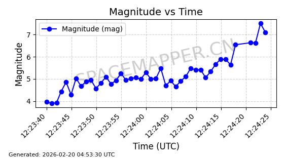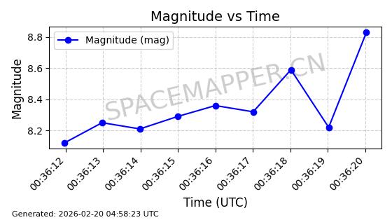 | STARLINK-2283 | 48014 | 48014 | 2021-03-24 同日期轨道 2021-024AP 同批次轨道 | 已陨落 | 88分钟 | 53.0371 | 155.987 | 165.763 | 0.0007475 | 2025-04-27 18:19:22 | ||