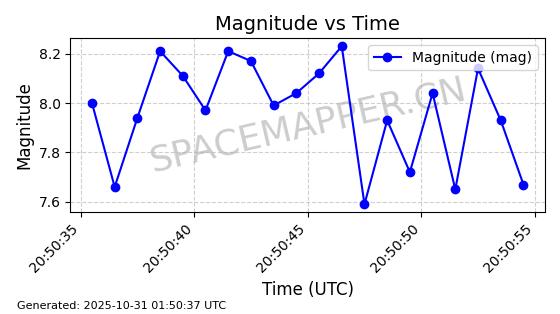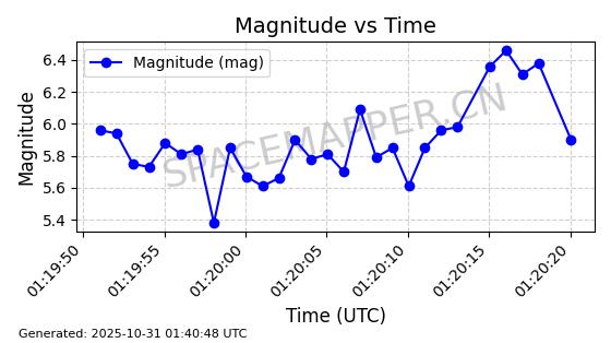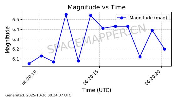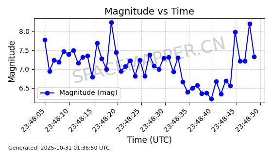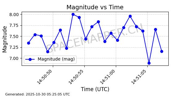 | STARLINK-2562 | 48288 | 48288 | 2021-04-29 同日期轨道 2021-036N 同批次轨道 | 已陨落 | 88分钟 | 53.0284 | 163.014 | 172.9 | 0.0007551 | 2025-09-29 15:38:24 | ||