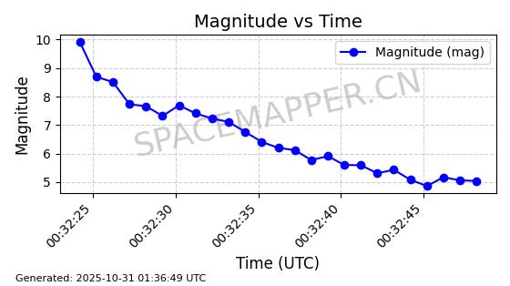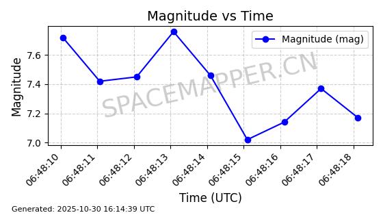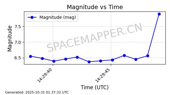 | STARLINK-2511 | 48332 | 48332 | 2021-04-29 同日期轨道 2021-036BJ 同批次轨道 | 在轨 | 94分钟 | 53.0550 | 479.17 | 481.106 | 0.0001411 | 2025-10-30 08:00:02 | ||