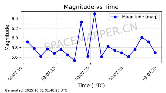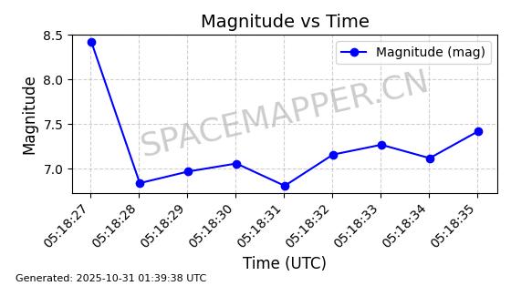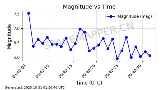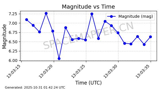 | STARLINK-2561 | 48403 | 48403 | 2021-05-04 同日期轨道 2021-038BC 同批次轨道 | 已陨落 | 88分钟 | 53.0342 | 172.572 | 173.882 | 0.0000999 | 2025-03-24 07:08:25 | ||
