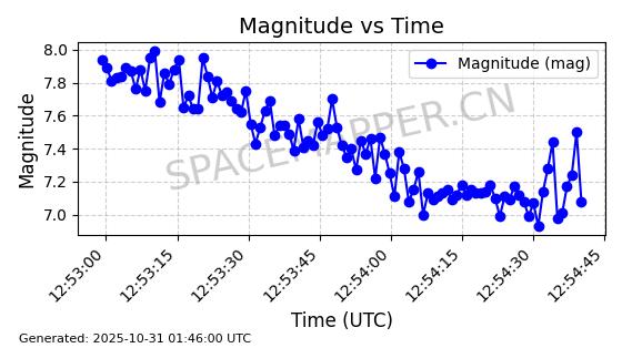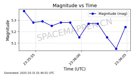 | STARLINK-2589 | 48371 | 48371 | 2021-05-04 同日期轨道 2021-038U 同批次轨道 | 在轨 | 96分钟 | 53.0534 | 546.203 | 548.009 | 0.0001303 | 2025-10-30 01:23:48 | ||