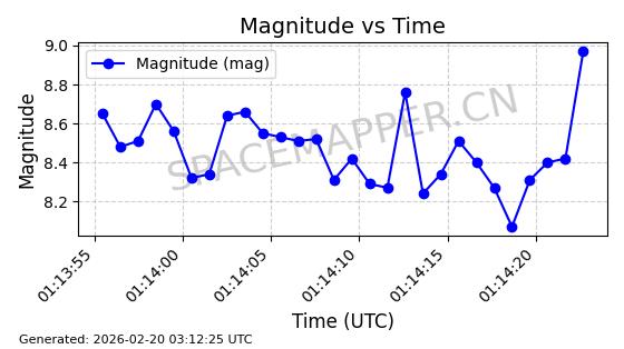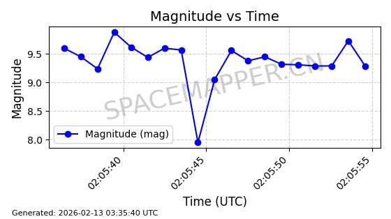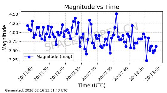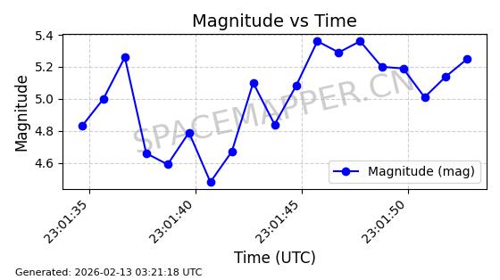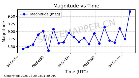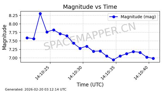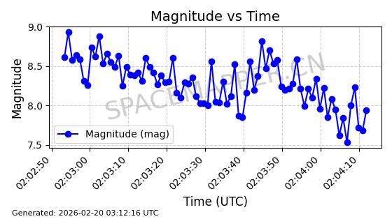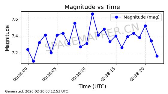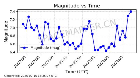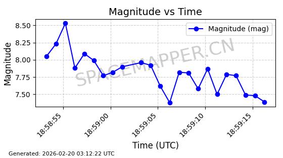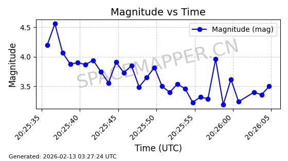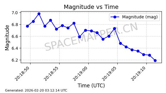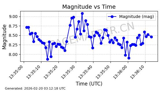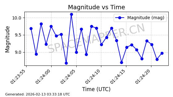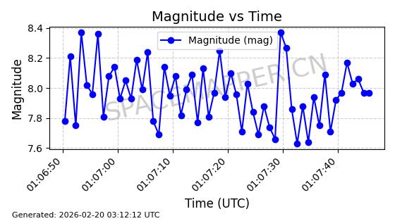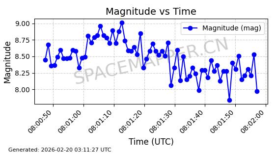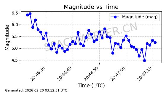 | STARLINK-2576 | 48400 | 48400 | 2021-05-04 同日期轨道 2021-038AZ 同批次轨道 | 在轨 | 94分钟 | 53.1595 | 474.435 | 476.053 | 0.0001179 | 2026-02-19 06:34:11 | ||