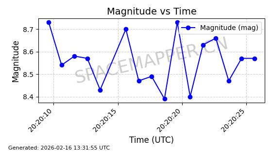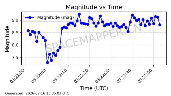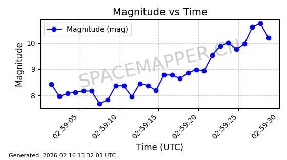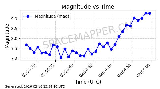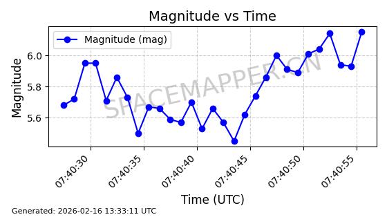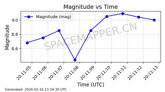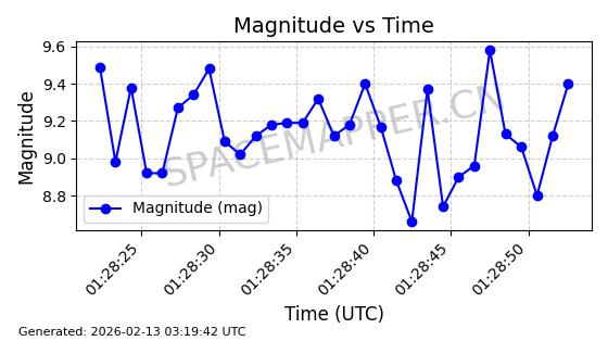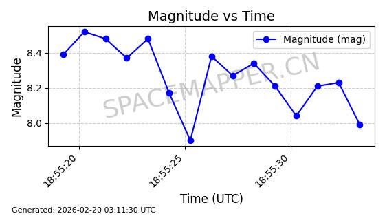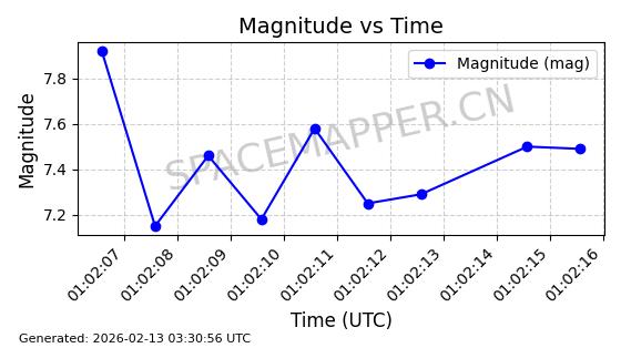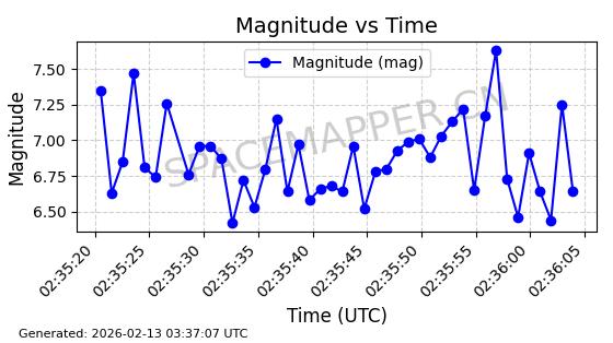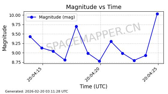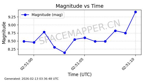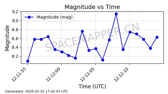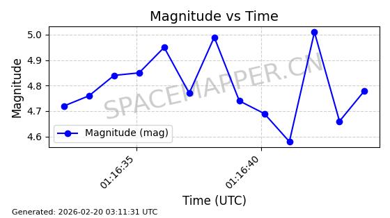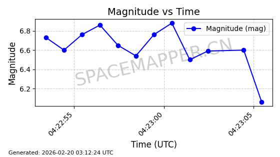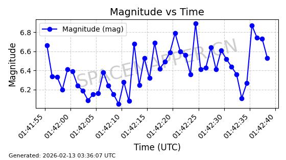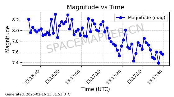 | STARLINK-2576 | 48400 | 48400 | 2021-05-04 同日期轨道 2021-038AZ 同批次轨道 | 在轨 | 94分钟 | 53.1595 | 474.435 | 476.053 | 0.0001179 | 2026-02-19 06:34:11 | ||