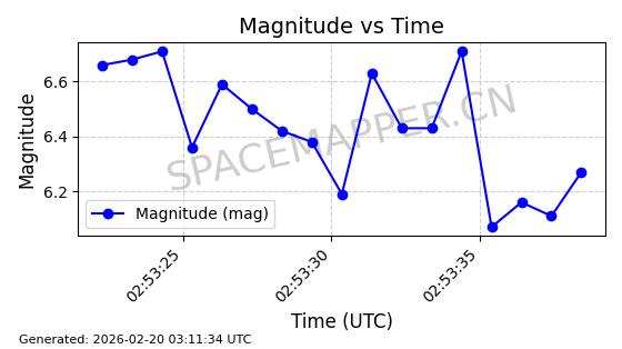 | STARLINK-2644 | 48442 | 48442 | 2021-05-09 同日期轨道 2021-040Q 同批次轨道 | 在轨 | 94分钟 | 53.1401 | 486.3 | 488.416 | 0.0001540 | 2026-02-19 06:00:02 | ||