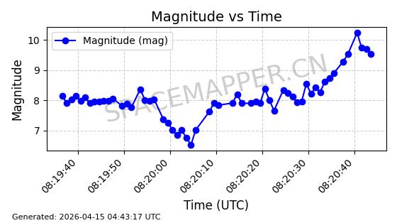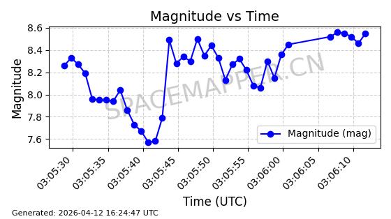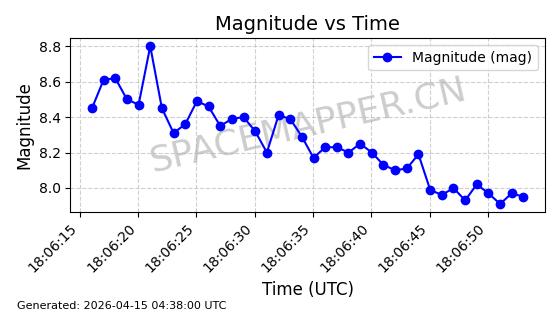 | STARLINK-2706 | 48481 | 48481 | 2021-05-09 同日期轨道 2021-040BF 同批次轨道 | 在轨 | 94分钟 | 53.1604 | 470.023 | 471.379 | 0.0000989 | 2026-04-14 04:41:49 | ||