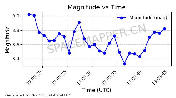 | STARLINK-2649 | 48680 | 48680 | 2021-05-26 同日期轨道 2021-044AU 同批次轨道 | 已陨落 | 88分钟 | 53.0343 | 197.08 | 200.59 | 0.0002668 | 2025-04-17 13:04:11 | ||