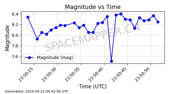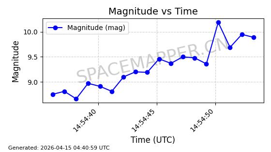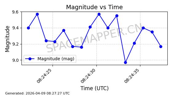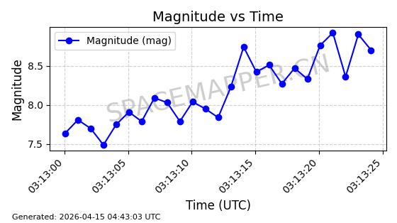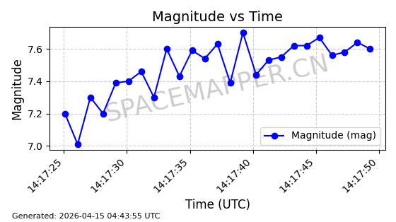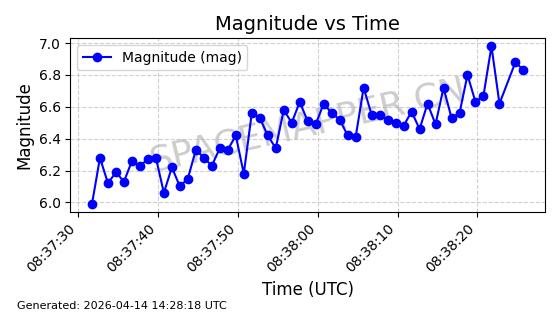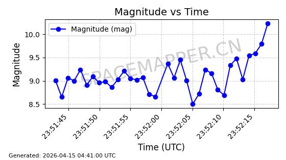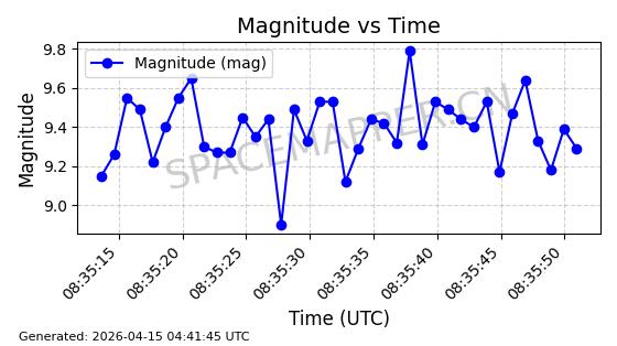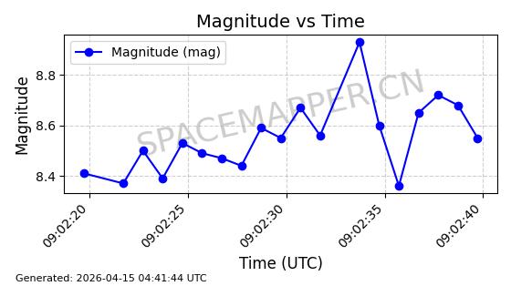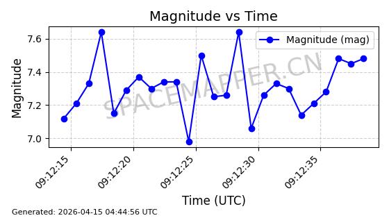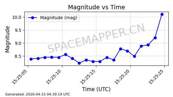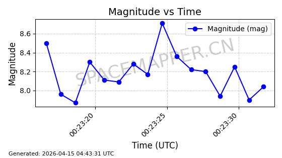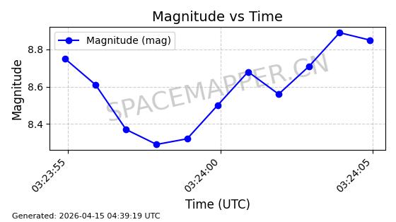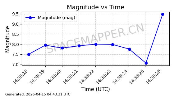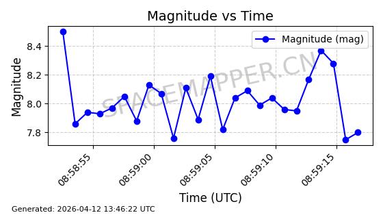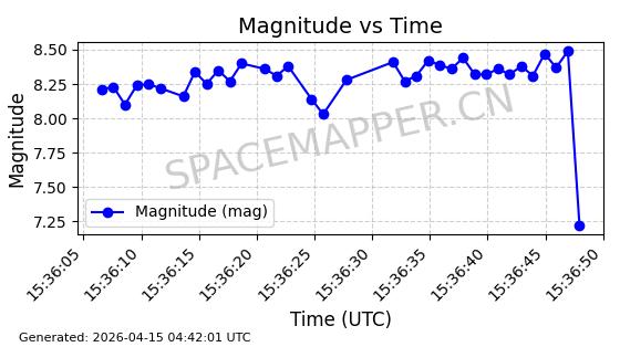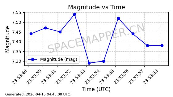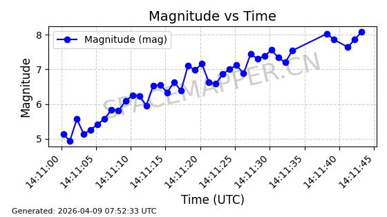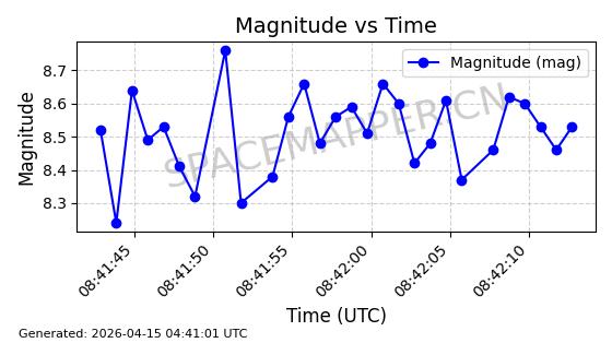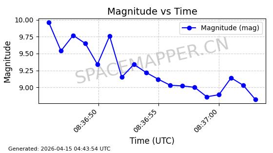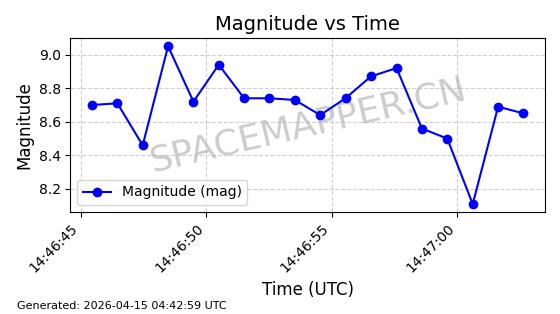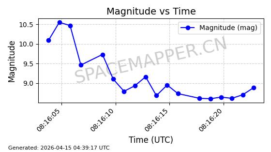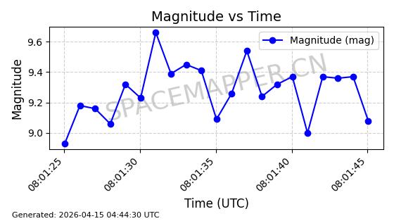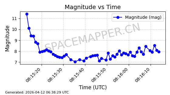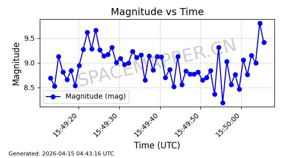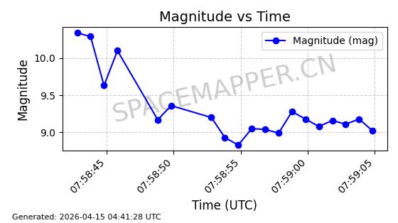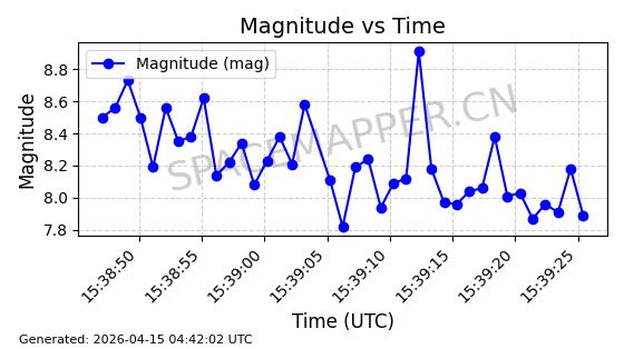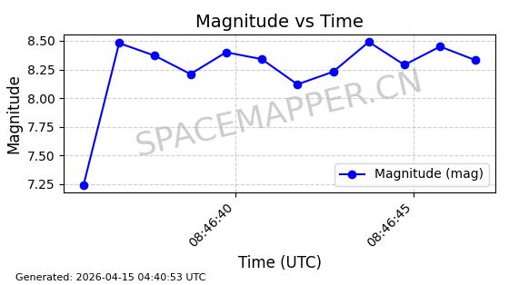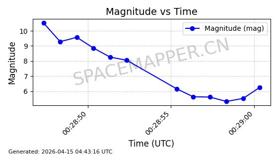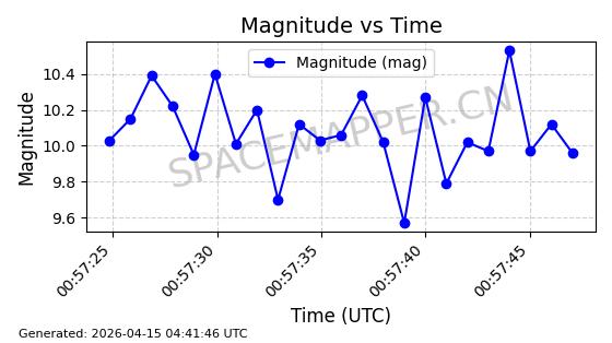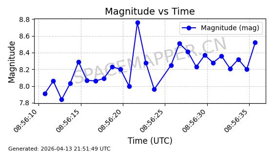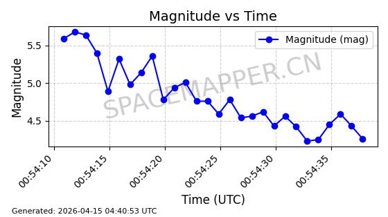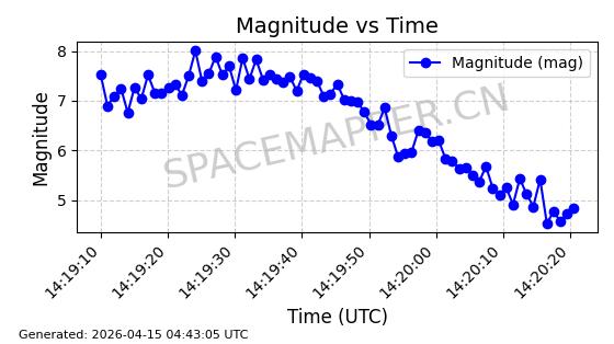 | STARLINK-2732 | 48646 | 48646 | 2021-05-26 同日期轨道 2021-044J 同批次轨道 | 在轨 | 94分钟 | 53.1595 | 470.043 | 471.611 | 0.0001144 | 2026-04-14 00:00:02 | ||