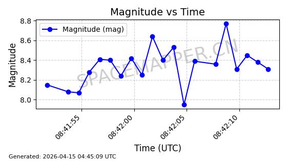 | STARLINK-2741 | 48684 | 48684 | 2021-05-26 同日期轨道 2021-044AY 同批次轨道 | 在轨 | 94分钟 | 53.1584 | 469.95 | 471.502 | 0.0001133 | 2026-04-14 04:06:53 | ||