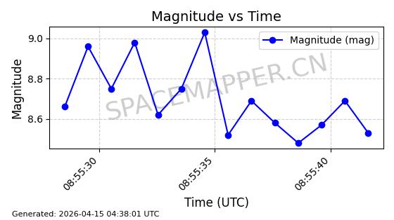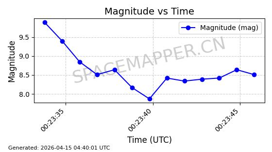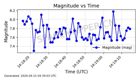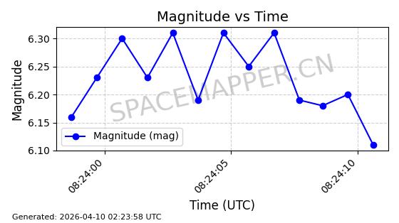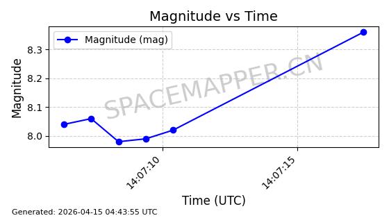 | 卫星名称 | AOE ID | NORAD ID | 发射日期 国际编号 | 在轨状态 | 轨道周期 | 轨道倾角 (度) | 近地点 (Km) | 远地点 (Km) | 偏心率 | 更新时间 (UTC) | 近期光变曲线 | 服务 |