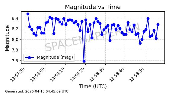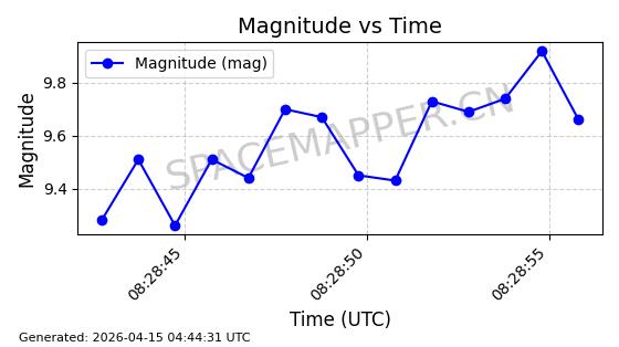 | STARLINK-2748 | 48694 | 48694 | 2021-05-26 同日期轨道 2021-044BJ 同批次轨道 | 在轨 | 94分钟 | 53.1596 | 469.867 | 471.631 | 0.0001287 | 2026-04-14 04:47:16 | ||