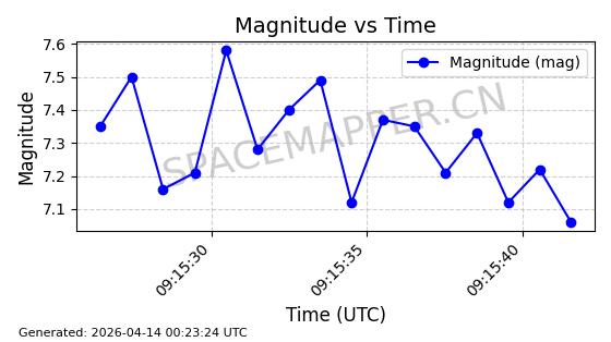 | STARLINK-2675 | 48470 | 48470 | 2021-05-09 同日期轨道 2021-040AU 同批次轨道 | 在轨 | 94分钟 | 53.1615 | 469.858 | 471.776 | 0.0001400 | 2026-04-14 06:00:02 | ||