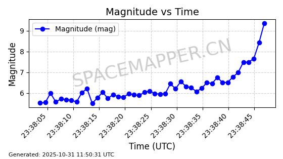 | STARLINK-30180 | 57435 | 57435 | 2023-07-24 同日期轨道 2023-105F 同批次轨道 | 已陨落 | 89分钟 | 42.9727 | 212.218 | 226.272 | 0.0010651 | 2025-06-15 15:31:22 |  | |