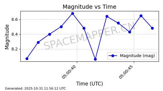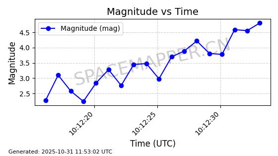 | 卫星名称 | AOE ID | NORAD ID | 发射日期 国际编号 | 在轨状态 | 轨道周期 | 轨道倾角 (度) | 近地点 (Km) | 远地点 (Km) | 偏心率 | 更新时间 (UTC) | 近期光变曲线 | 服务 |