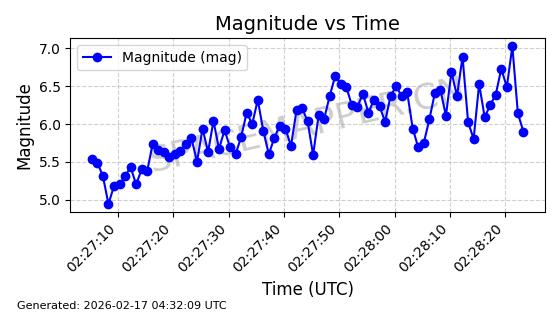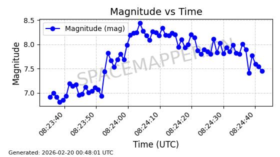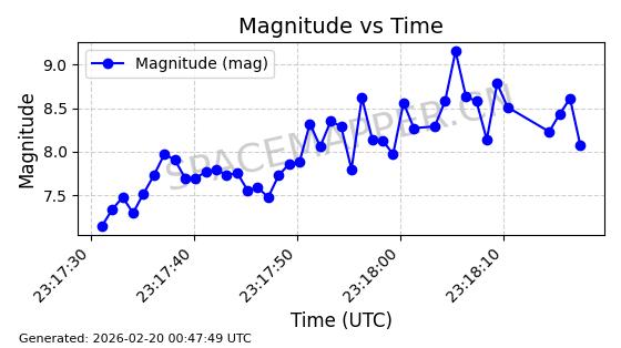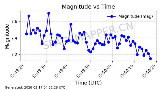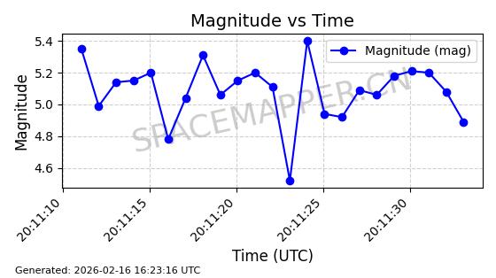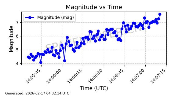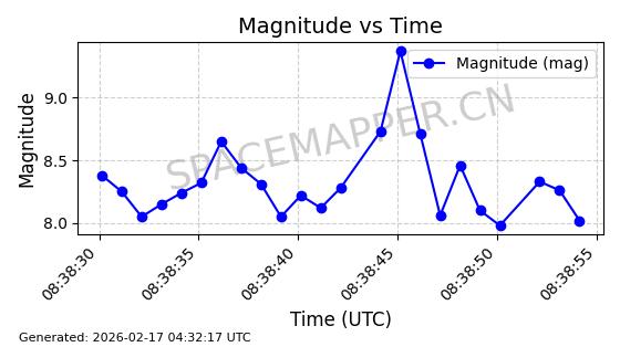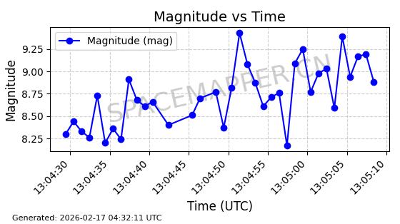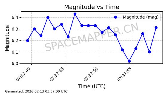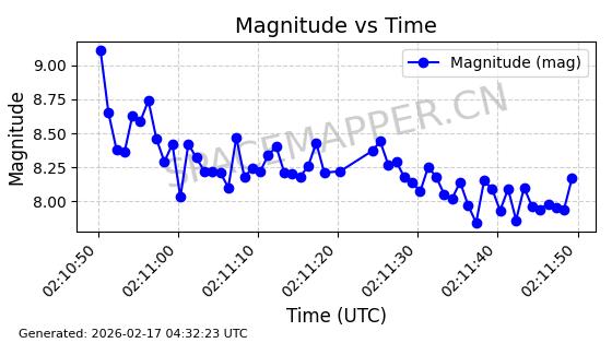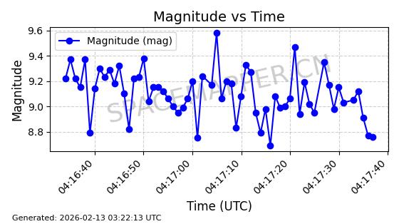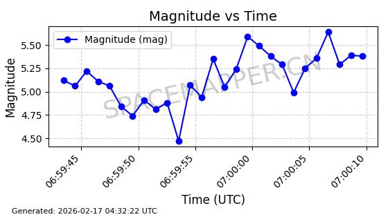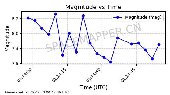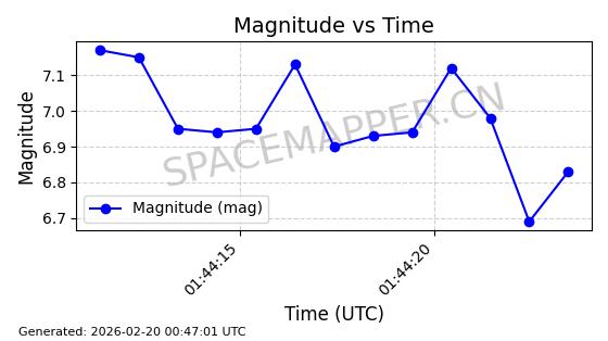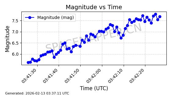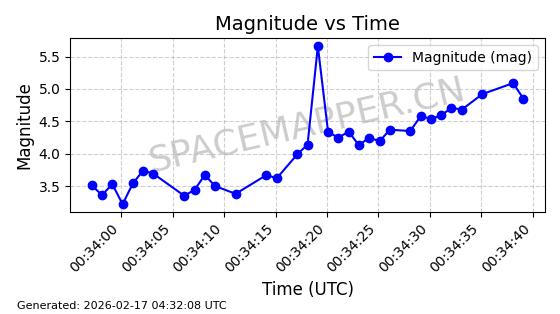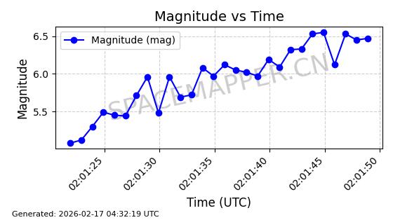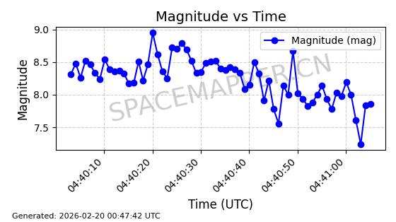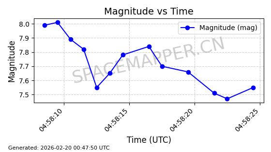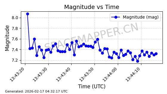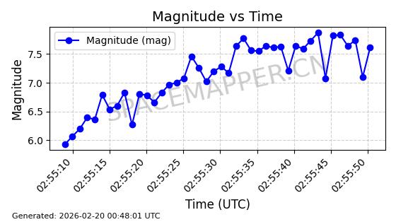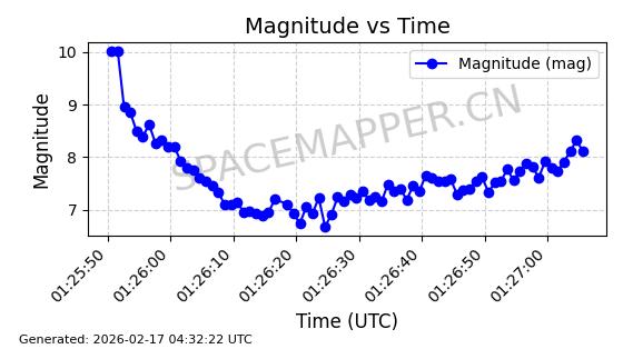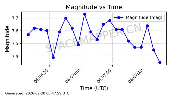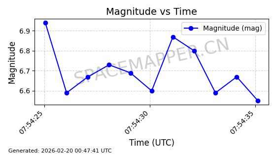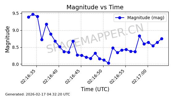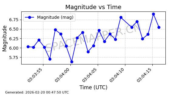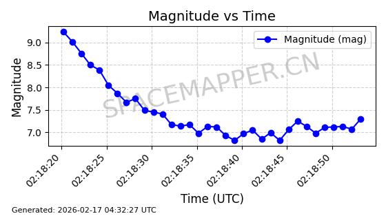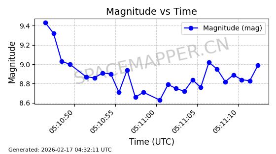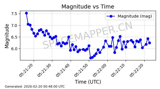 | STARLINK-2748 | 48694 | 48694 | 2021-05-26 同日期轨道 2021-044BJ 同批次轨道 | 在轨 | 94分钟 | 53.1616 | 474.205 | 476.331 | 0.0001551 | 2026-02-18 16:00:17 | ||