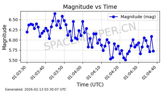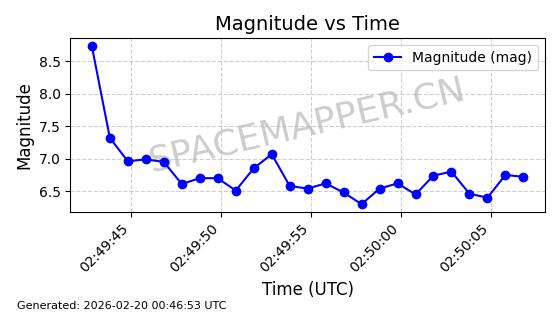 | STARLINK-3100 | 49144 | 49144 | 2021-09-14 同日期轨道 2021-082Q 同批次轨道 | 在轨 | 96分钟 | 70.0010 | 570.264 | 573.772 | 0.0002523 | 2026-02-19 05:00:50 | ||