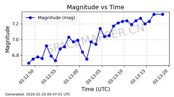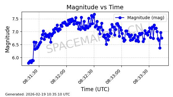 | STARLINK-3095 | 49160 | 49160 | 2021-09-14 同日期轨道 2021-082AG 同批次轨道 | 在轨 | 96分钟 | 70.0011 | 570.197 | 573.923 | 0.0002680 | 2026-02-19 02:48:40 | ||
