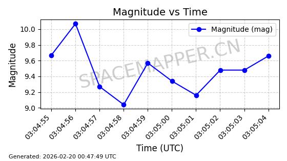 | STARLINK-3102 | 49151 | 49151 | 2021-09-14 同日期轨道 2021-082X 同批次轨道 | 在轨 | 96分钟 | 70.0009 | 570.634 | 573.464 | 0.0002035 | 2026-02-19 01:59:57 | ||