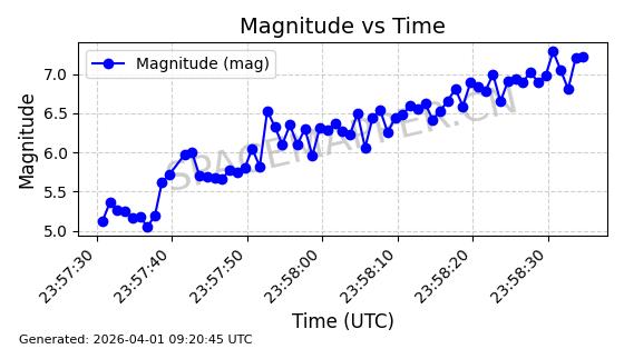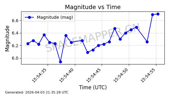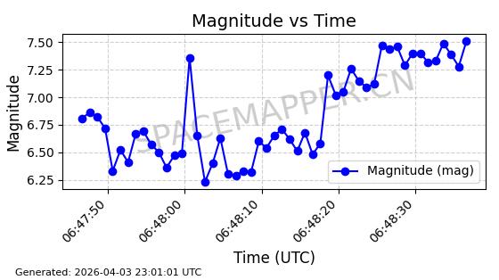 | STARLINK-11130 | 59950 | 59950 | 2024-06-05 同日期轨道 2024-107F 同批次轨道 | 在轨 | 92分钟 | 53.1586 | 358.699 | 360.665 | 0.0001458 | 2026-04-03 06:19:31 | ||