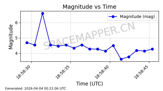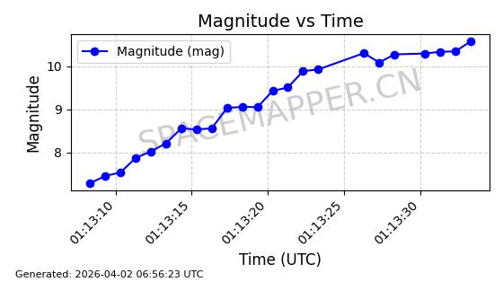 | STARLINK-11141 | 60066 | 60066 | 2024-06-19 同日期轨道 2024-113H 同批次轨道 | 在轨 | 92分钟 | 53.1576 | 359.022 | 360.456 | 0.0001063 | 2026-04-03 04:40:41 | ||
