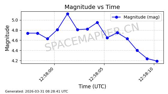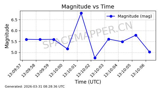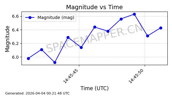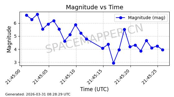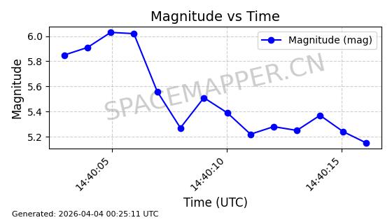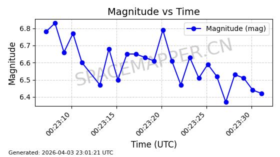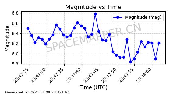 | STARLINK-11206 | 60312 | 60312 | 2024-07-28 同日期轨道 2024-133M 同批次轨道 | 在轨 | 92分钟 | 53.1580 | 358.899 | 360.359 | 0.0001082 | 2026-04-03 02:25:03 | ||