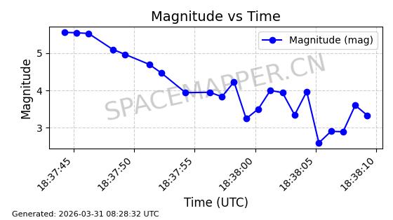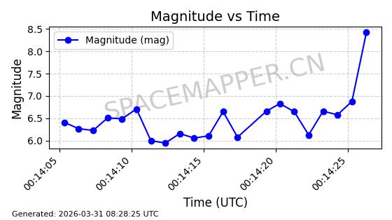 | 卫星名称 | AOE ID | NORAD ID | 发射日期 国际编号 | 在轨状态 | 轨道周期 | 轨道倾角 (度) | 近地点 (Km) | 远地点 (Km) | 偏心率 | 更新时间 (UTC) | 近期光变曲线 | 服务 |