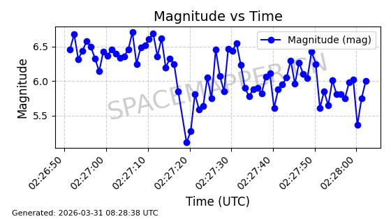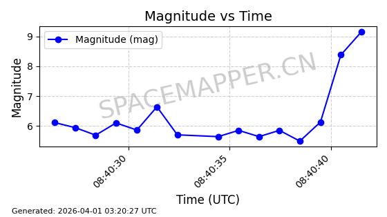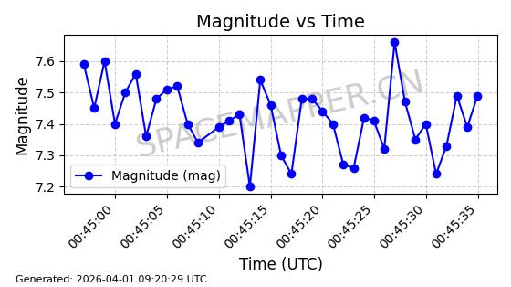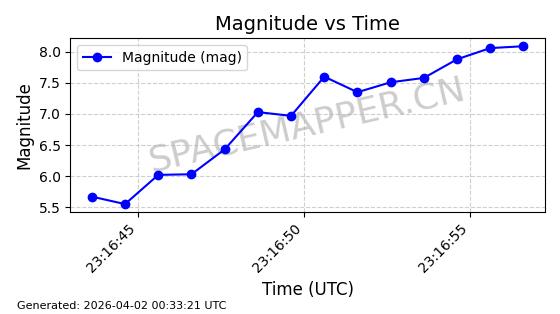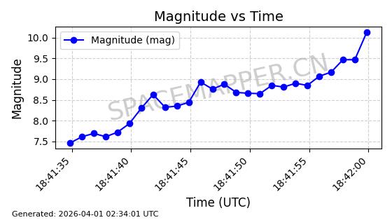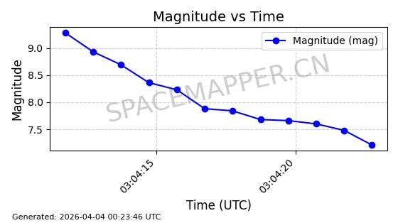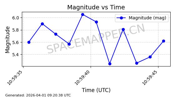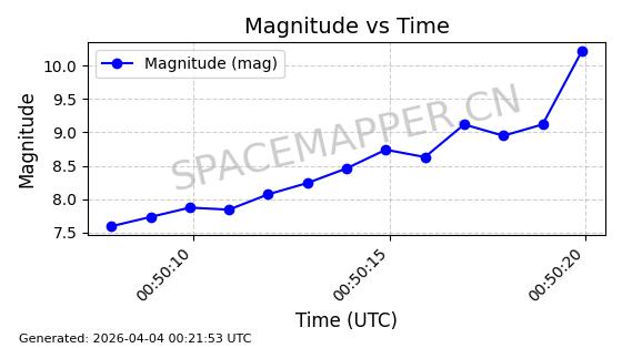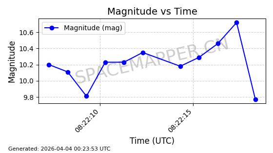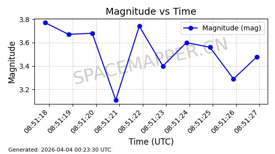 | STARLINK-11188 | 60722 | 60722 | 2024-08-28 同日期轨道 2024-152C 同批次轨道 | 在轨 | 92分钟 | 53.1593 | 359.128 | 360.216 | 0.0000806 | 2026-04-03 00:28:40 | ||