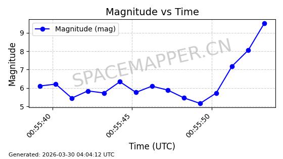 | STARLINK-11155 | 60046 | 60046 | 2024-06-08 同日期轨道 2024-112J 同批次轨道 | 在轨 | 92分钟 | 53.1574 | 358.859 | 360.323 | 0.0001086 | 2026-04-03 03:28:24 | ||