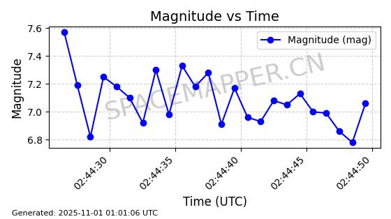 | 卫星名称 | AOE ID | NORAD ID | 发射日期 国际编号 | 在轨状态 | 轨道周期 | 轨道倾角 (度) | 近地点 (Km) | 远地点 (Km) | 偏心率 | 更新时间 (UTC) | 近期光变曲线 | 服务 |