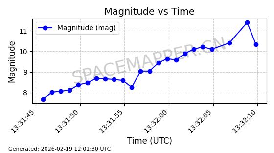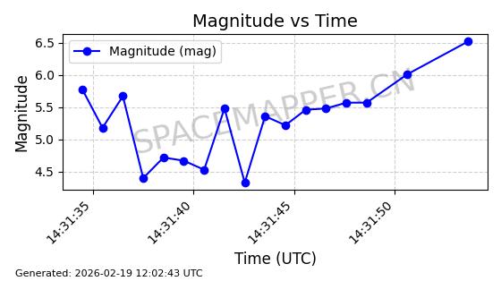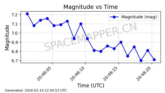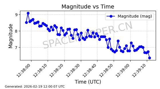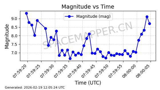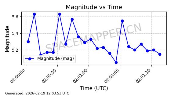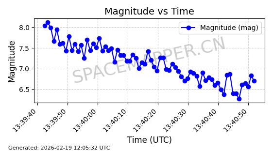 | STARLINK-3285 | 50181 | 50181 | 2021-12-18 同日期轨道 2021-125AB 同批次轨道 | 在轨 | 95分钟 | 53.2175 | 538.742 | 540.732 | 0.0001438 | 2026-02-19 04:33:00 | ||