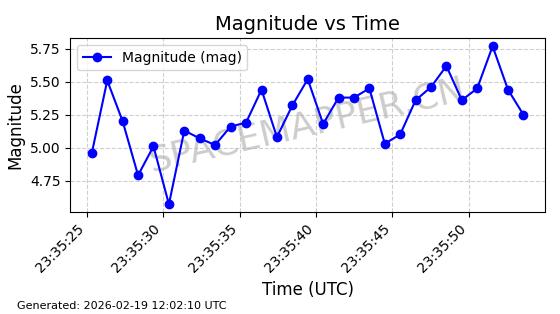 | STARLINK-3235 | 50200 | 50200 | 2021-12-18 同日期轨道 2021-125AW 同批次轨道 | 在轨 | 95分钟 | 53.2188 | 538.82 | 540.674 | 0.0001340 | 2026-02-19 01:38:04 | ||