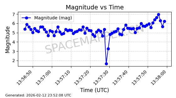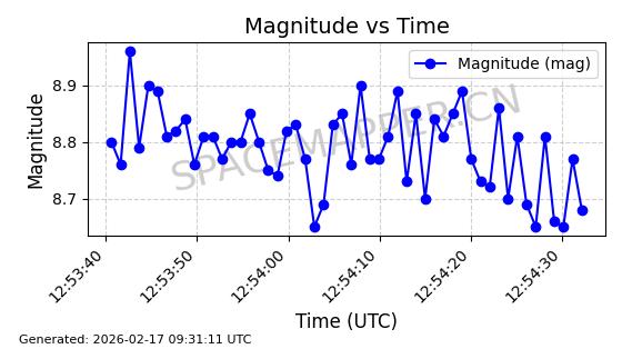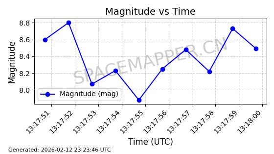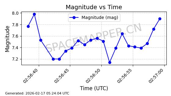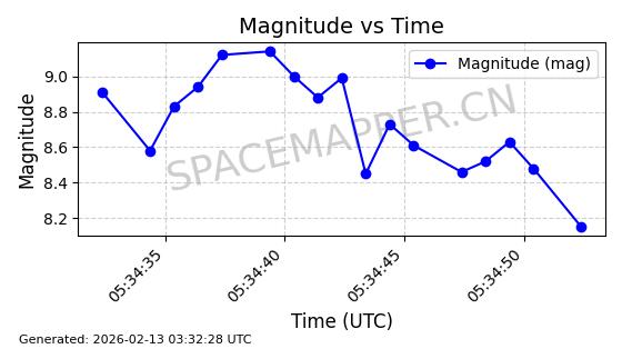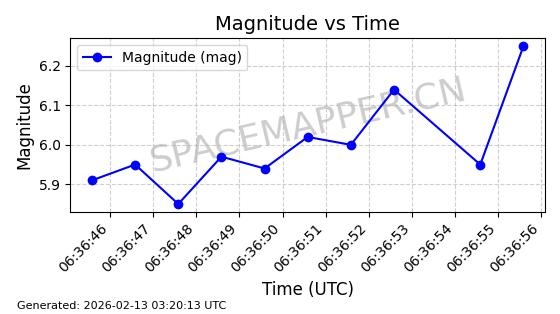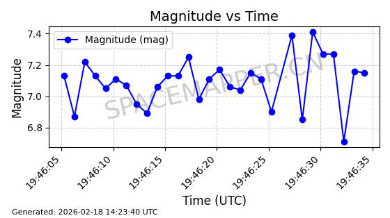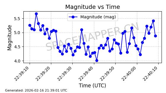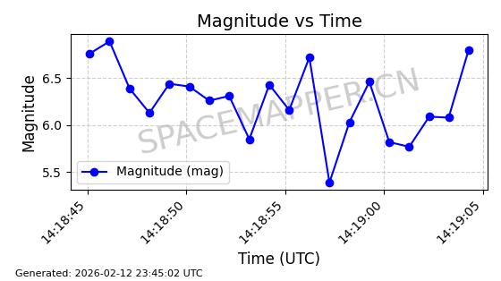 | STARLINK-3314 | 50851 | 50851 | 2022-01-06 同日期轨道 2022-001BA 同批次轨道 | 在轨 | 95分钟 | 53.2160 | 538.679 | 540.813 | 0.0001541 | 2026-02-18 23:12:20 | ||