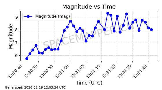 | STARLINK-3301 | 50169 | 50169 | 2021-12-18 同日期轨道 2021-125P 同批次轨道 | 在轨 | 95分钟 | 53.2183 | 538.885 | 540.597 | 0.0001237 | 2026-02-19 00:01:22 | ||