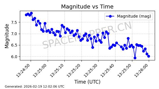 | STARLINK-3272 | 50187 | 50187 | 2021-12-18 同日期轨道 2021-125AH 同批次轨道 | 在轨 | 95分钟 | 53.2180 | 538.669 | 540.847 | 0.0001574 | 2026-02-19 04:01:09 | ||