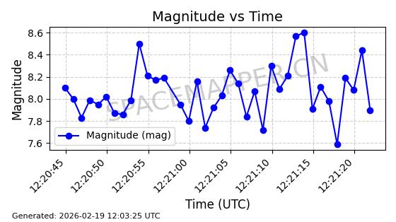 | STARLINK-3305 | 50166 | 50166 | 2021-12-18 同日期轨道 2021-125L 同批次轨道 | 在轨 | 95分钟 | 53.2194 | 538.512 | 540.894 | 0.0001721 | 2026-02-19 03:50:34 | ||