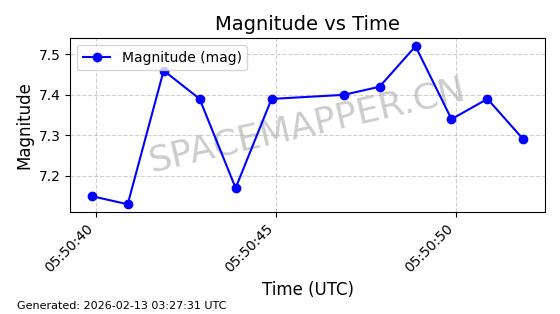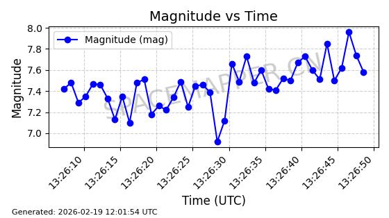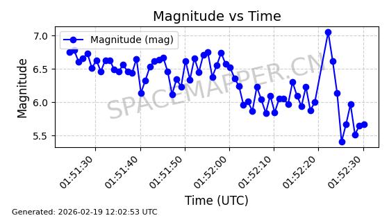 | STARLINK-3310 | 50835 | 50835 | 2022-01-06 同日期轨道 2022-001AJ 同批次轨道 | 在轨 | 95分钟 | 53.2164 | 538.792 | 540.722 | 0.0001394 | 2026-02-19 00:37:09 | ||