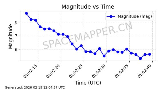 | STARLINK-3366 | 51104 | 51104 | 2022-01-19 同日期轨道 2022-005A 同批次轨道 | 在轨 | 95分钟 | 53.2187 | 538.853 | 540.643 | 0.0001293 | 2026-02-19 06:12:18 | ||
