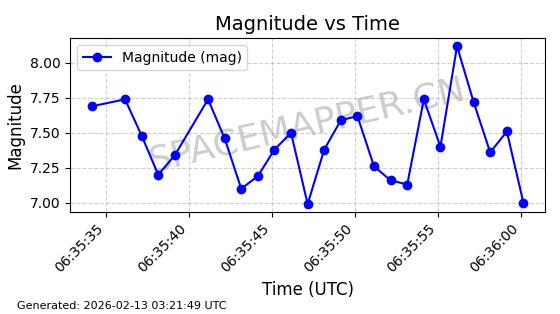 | STARLINK-3284 | 50178 | 50178 | 2021-12-18 同日期轨道 2021-125Y 同批次轨道 | 已陨落 | 88分钟 | 53.1927 | 149.273 | 153.963 | 0.0003591 | 2026-02-05 09:43:54 | ||