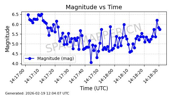 | STARLINK-3269 | 50194 | 50194 | 2021-12-18 同日期轨道 2021-125AQ 同批次轨道 | 在轨 | 90分钟 | 53.2057 | 293.324 | 304.364 | 0.0008266 | 2026-02-19 06:00:02 | ||