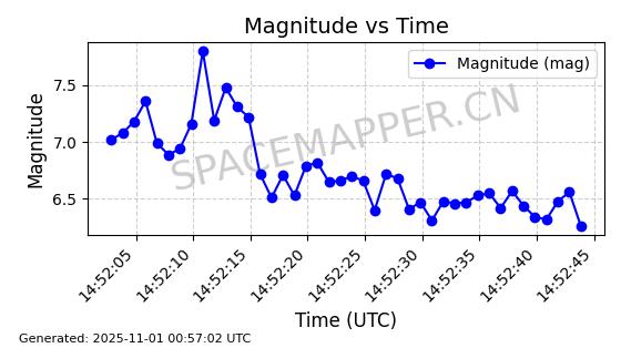 | STARLINK-30715 | 57941 | 57941 | 2023-09-25 同日期轨道 2023-148G 同批次轨道 | 在轨 | 94分钟 | 53.1602 | 474.379 | 476.107 | 0.0001260 | 2025-10-31 03:39:31 |  | |