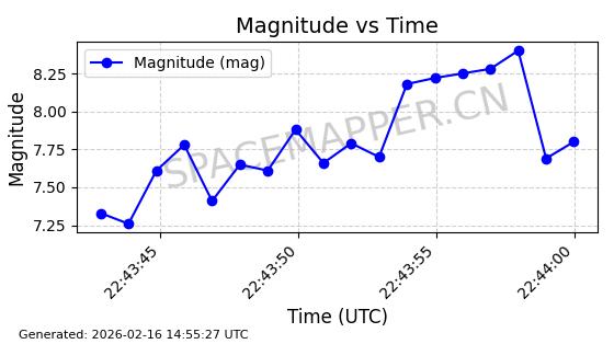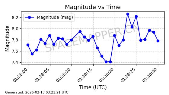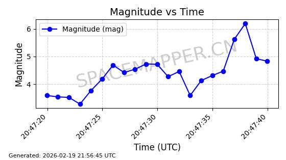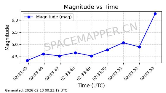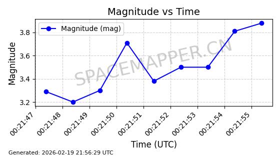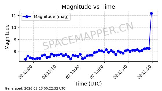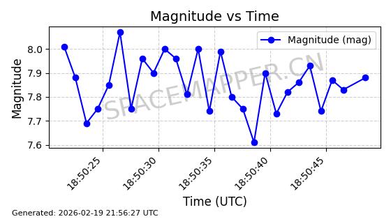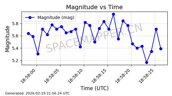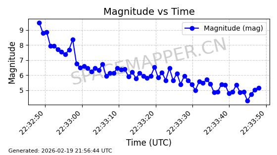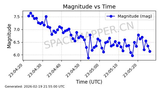 | STARLINK-3638 | 51786 | 51786 | 2022-02-25 同日期轨道 2022-017U 同批次轨道 | 在轨 | 95分钟 | 53.2166 | 538.887 | 540.607 | 0.0001242 | 2026-02-19 01:02:18 | ||