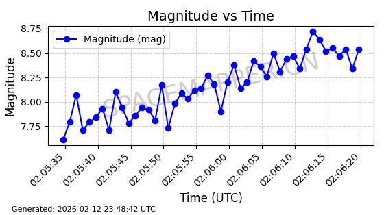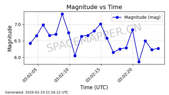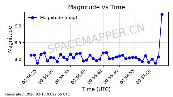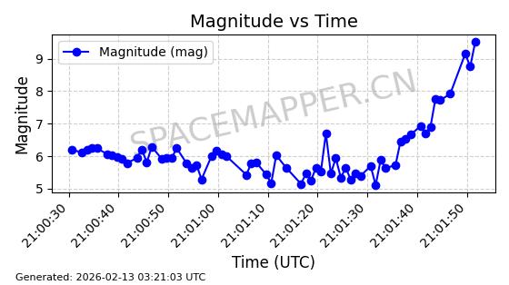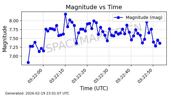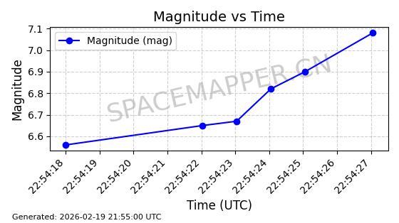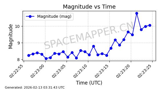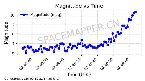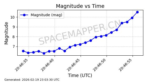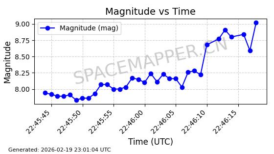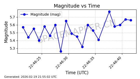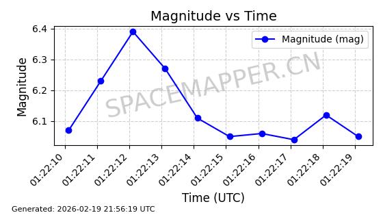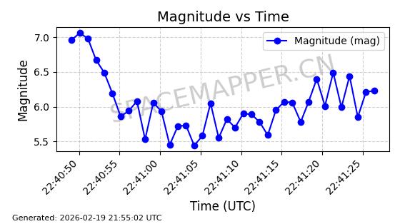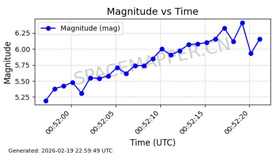 | STARLINK-3541 | 51854 | 51854 | 2022-03-03 同日期轨道 2022-022C 同批次轨道 | 在轨 | 95分钟 | 53.2132 | 526.536 | 527.344 | 0.0000584 | 2026-02-19 03:03:30 | ||